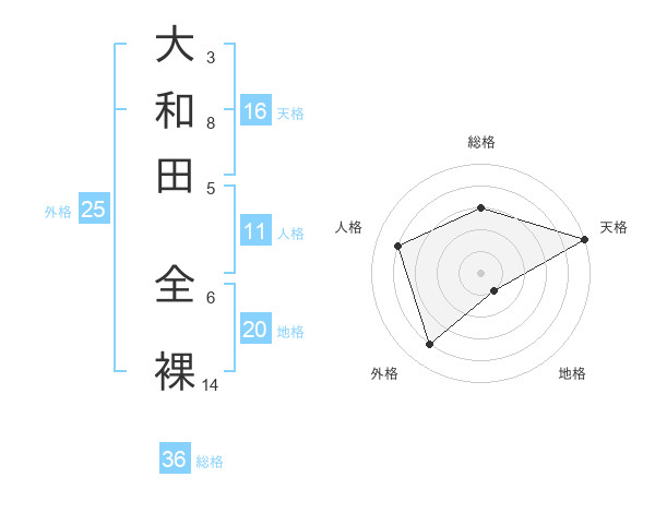 大和田 全裸さんを姓名の画数から五運を鑑定