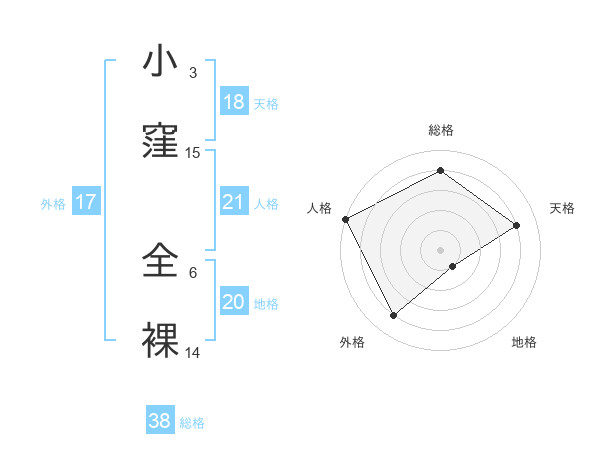 小窪 全裸さんの地格は20画の1点!