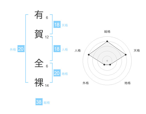 有賀 全裸さんを姓名の画数から五運を鑑定