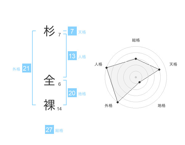 杉 全裸さんの地格は20画の1点!