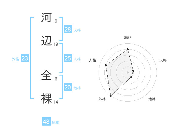 河辺 全裸さんを姓名の画数から五運を鑑定