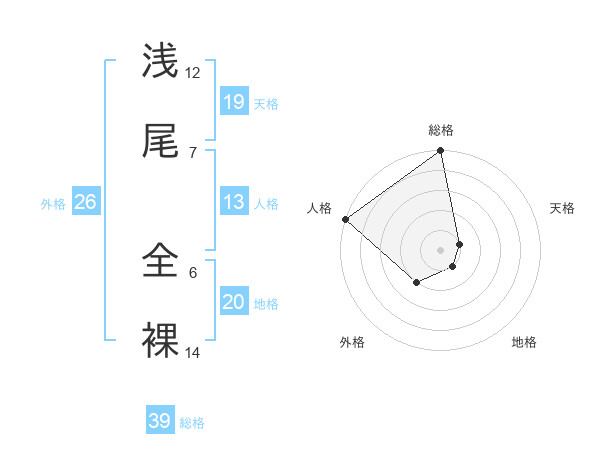 浅尾 全裸さんの総格は39画の5点!