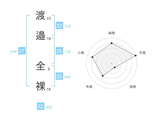 渡邉 全裸さんの総格は52画の4点!