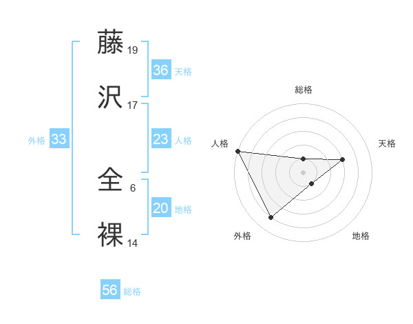 藤沢 全裸さんを姓名の画数から五運を鑑定
