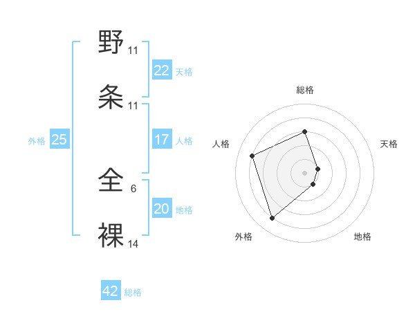 野条 全裸さんの地格は20画の1点!