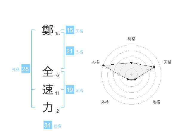 鄭 全速力さんを姓名の画数から五運を鑑定