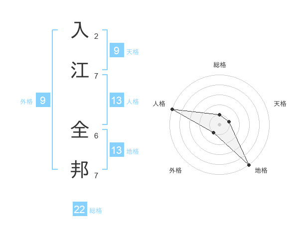 入江 全邦さんの総格は22画の1点!