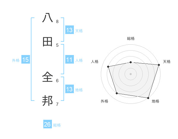家系が持つ宿命的な運勢を表します。祖先から受け継いだ苗字ですので自分の力が及びません。家柄を象徴します。