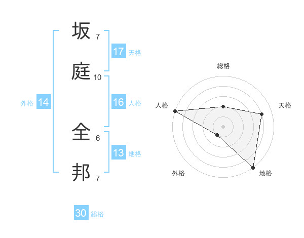 坂庭 全邦さんの総格は30画の2点!