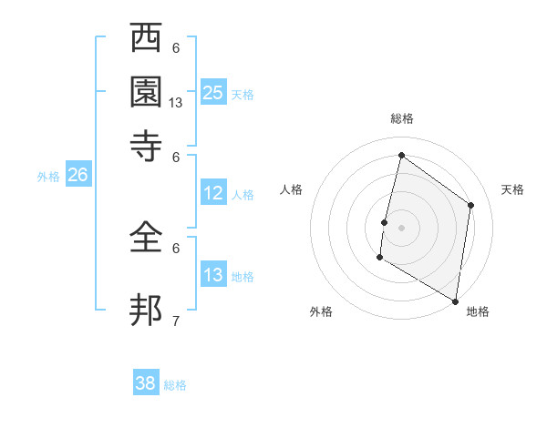 西園寺 全邦さんを姓名の画数から五運を鑑定