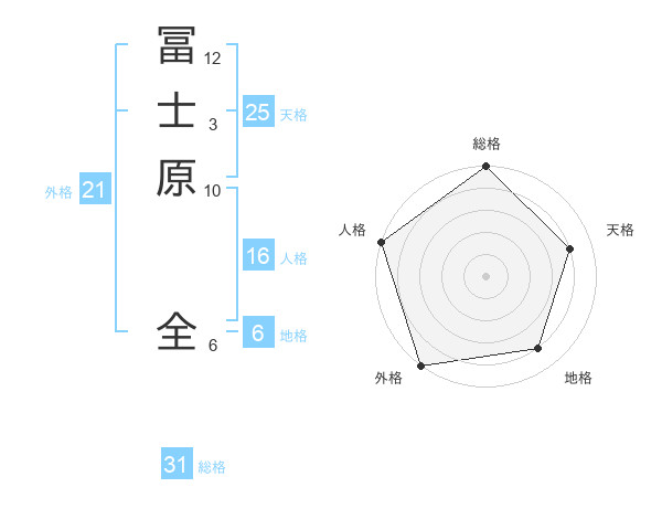 冨士原 全さんの総格は31画の5点!