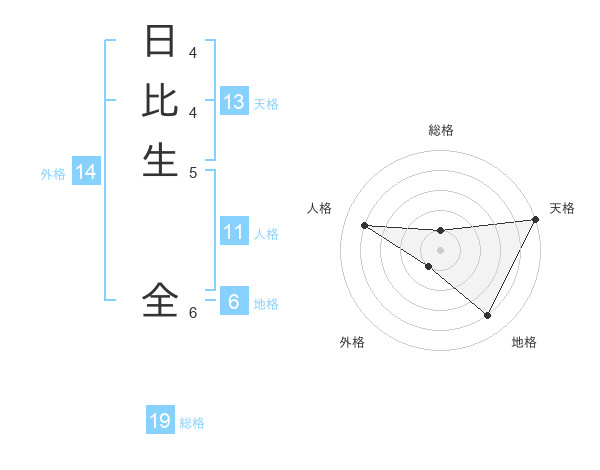 日比生 全さんの総格は19画の1点!