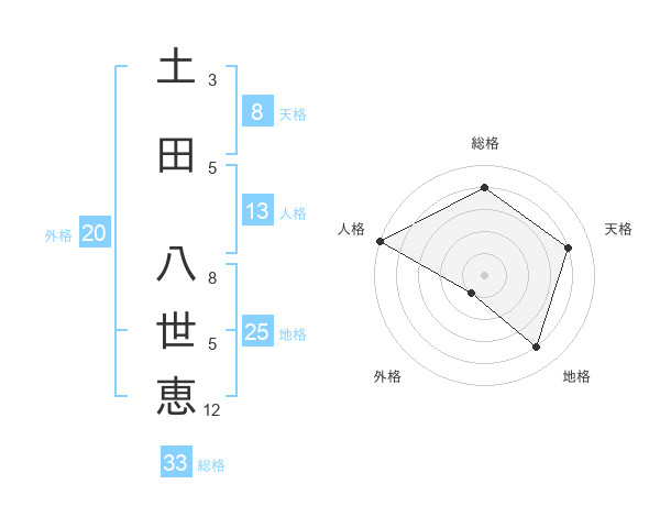 土田 八世恵さんを姓名の画数から五運を鑑定