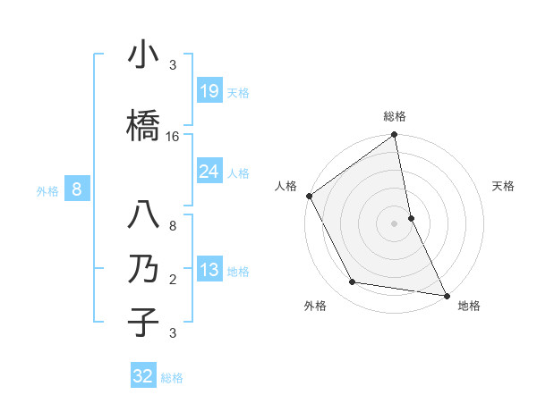小橋 八乃子さんを姓名の画数から五運を鑑定