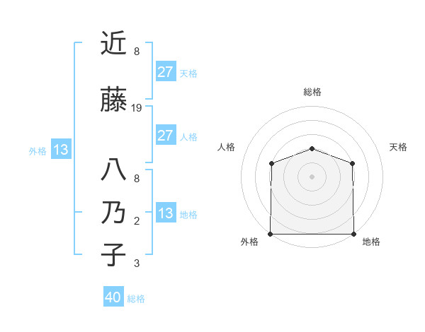 近藤 八乃子さんを姓名の画数から五運を鑑定