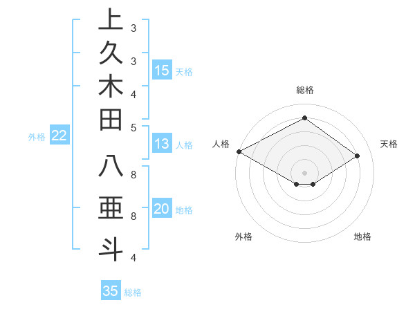 上久木田 八亜斗さんを姓名の画数から五運を鑑定