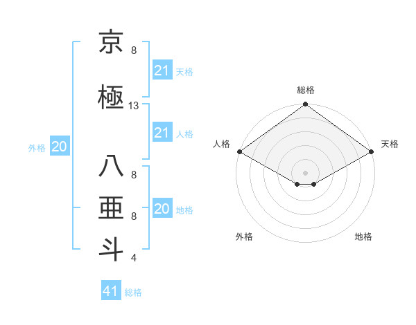 京極 八亜斗さんを姓名の画数から五運を鑑定