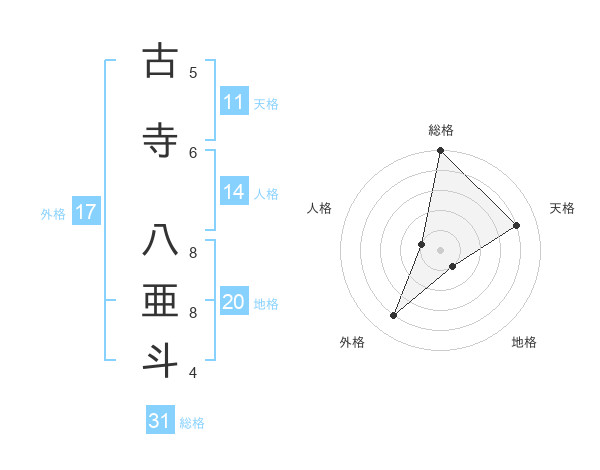 古寺 八亜斗さんを姓名の画数から五運を鑑定