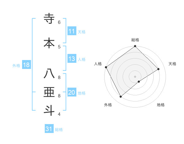 寺本 八亜斗さんを姓名の画数から五運を鑑定