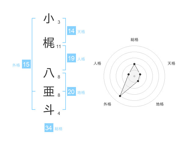 小梶 八亜斗さんを姓名の画数から五運を鑑定