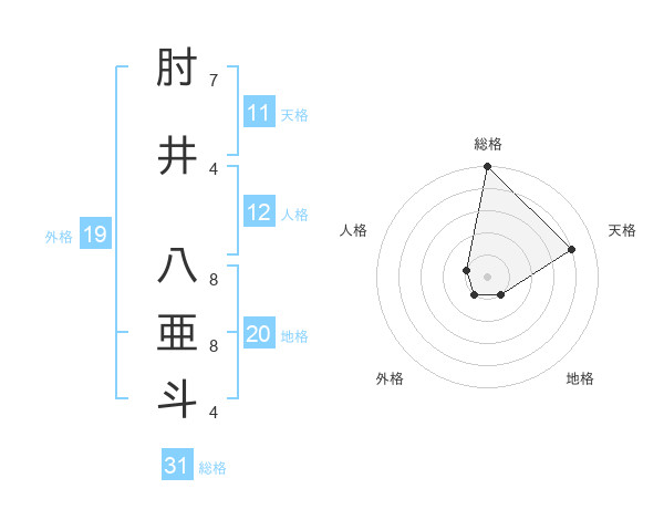 肘井 八亜斗さんを姓名の画数から五運を鑑定