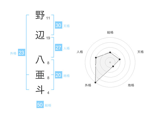 野辺 八亜斗さんを姓名の画数から五運を鑑定