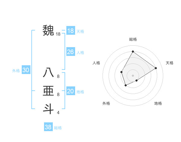 魏 八亜斗さんの天格は18画の4点!