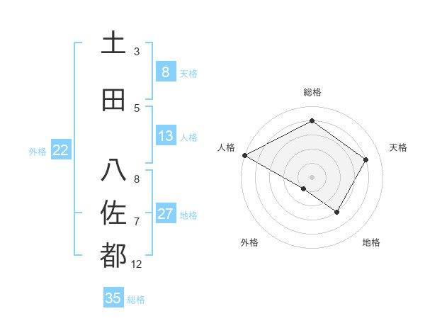 土田 八佐都さんを姓名の画数から五運を鑑定