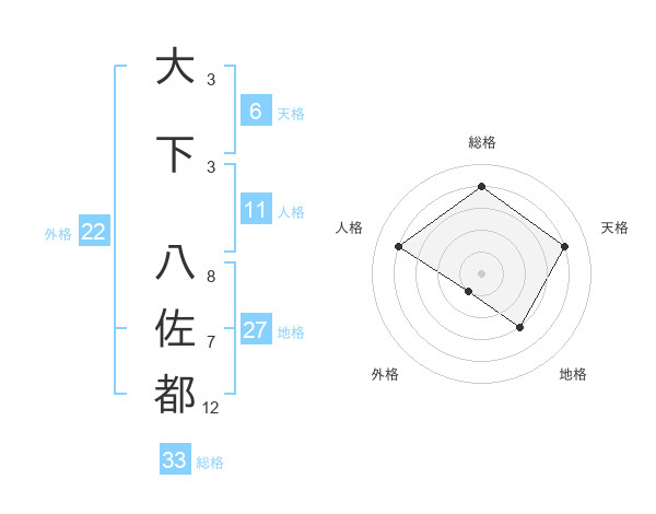 大下 八佐都さんを姓名の画数から五運を鑑定