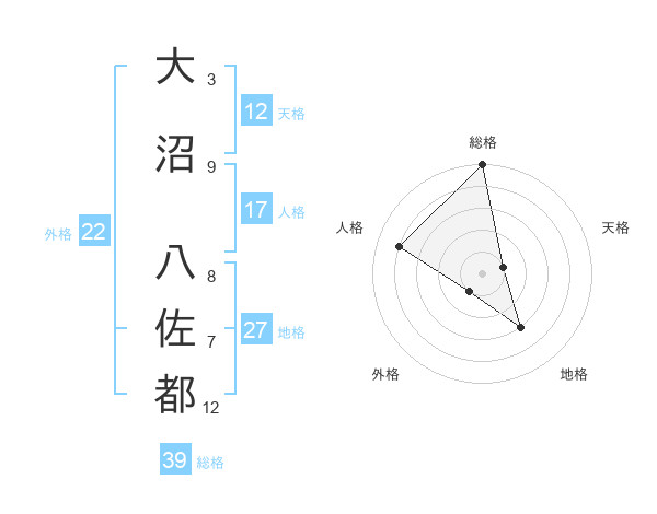 大沼 八佐都さんの総格は39画の5点