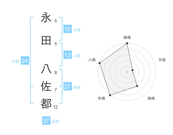 永田 八佐都さんを姓名の画数から五運を鑑定