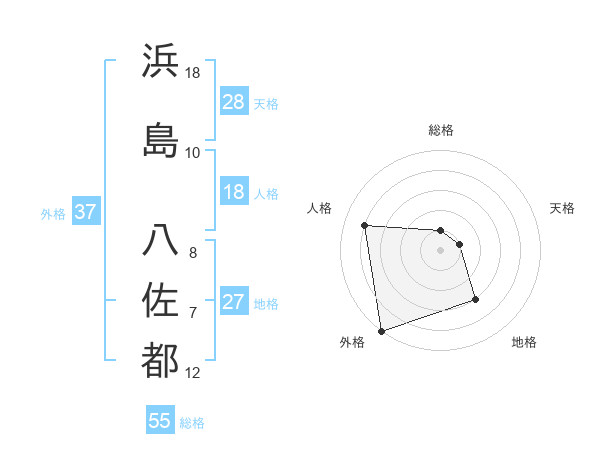 浜島 八佐都さんの外格は37画の5点!