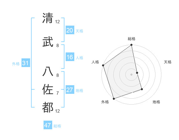清武 八佐都さんを姓名の画数から五運を鑑定