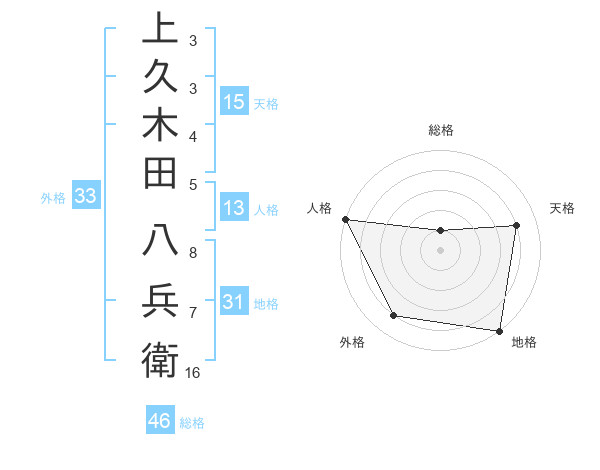 上久木田 八兵衛さんを姓名の画数から五運を鑑定