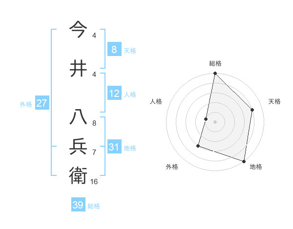 今井 八兵衛さんを姓名の画数から五運を鑑定