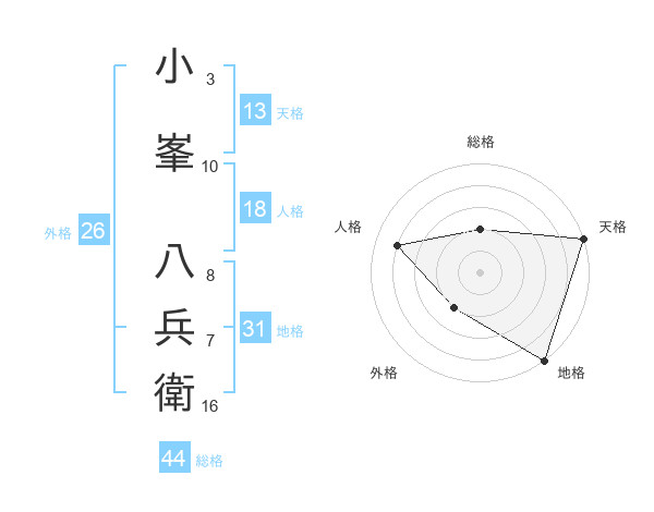 小峯 八兵衛さんの地格は31画の5点!