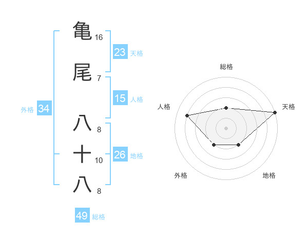 亀尾 八十八さんの総格は49画の2点!