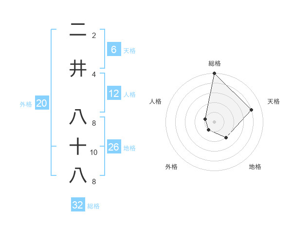 二井 八十八さんの総格は32画の5点!