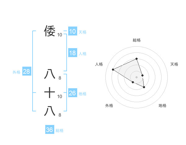 倭 八十八さんの総格は36画の3点!