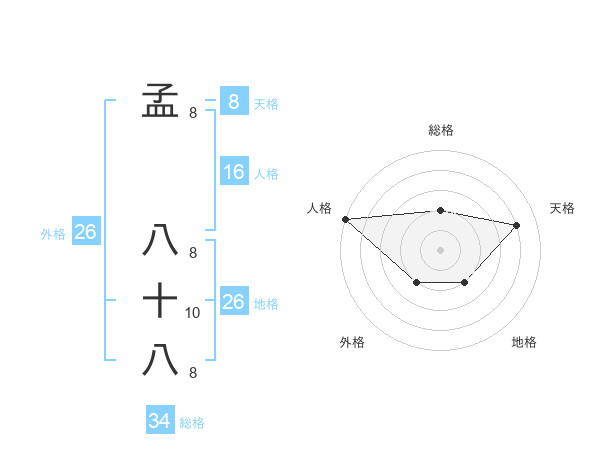 孟 八十八さんの総格は34画の2点