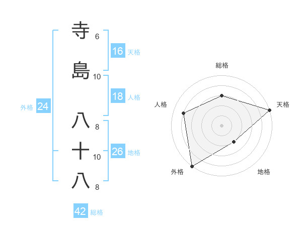 寺島 八十八さんの総格は42画の3点!