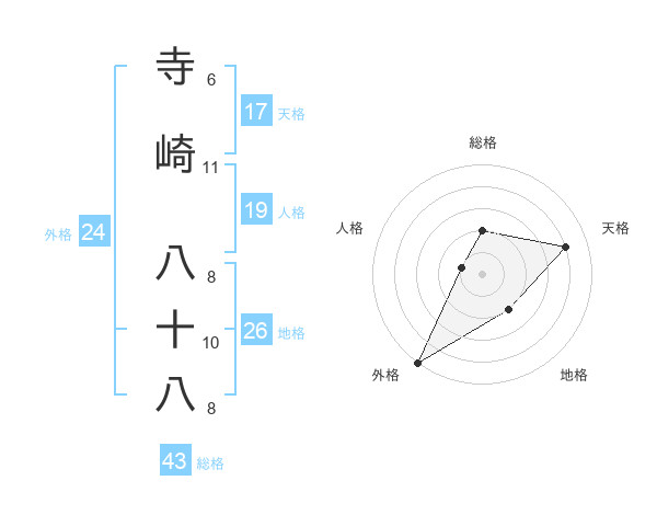 寺崎 八十八さんを姓名の画数から五運を鑑定
