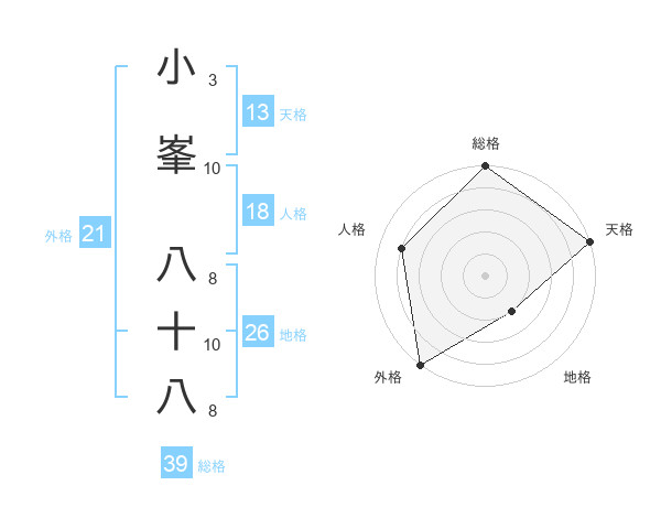 小峯 八十八さんを姓名の画数から五運を鑑定