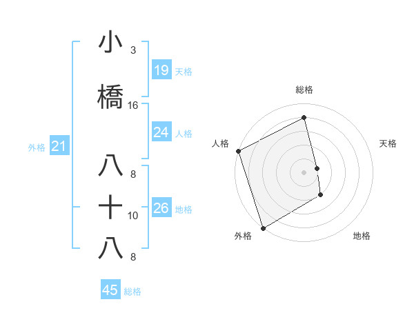 小橋 八十八さんを姓名の画数から五運を鑑定