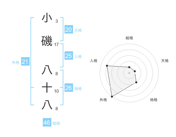 小磯 八十八さんを姓名の画数から五運を鑑定