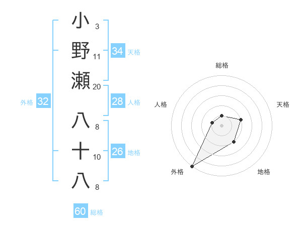 小野瀬 八十八さんを姓名の画数から五運を鑑定