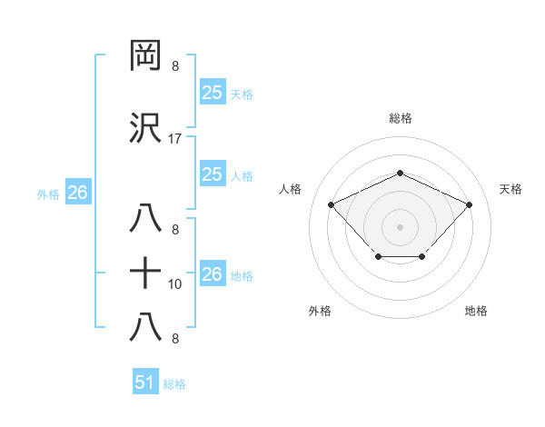 岡沢 八十八さんを姓名の画数から五運を鑑定