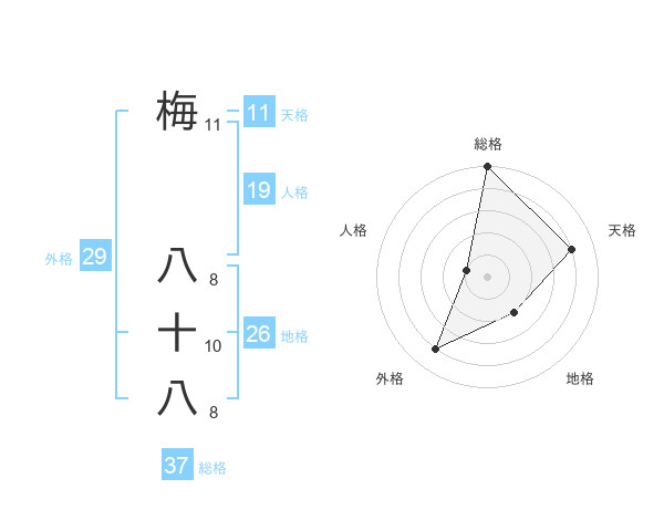 梅 八十八さんの総格は37画の5点!