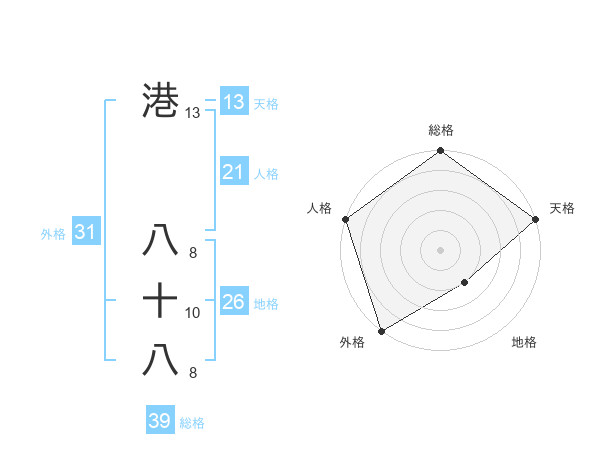 港 八十八さんの総格は39画の5点!