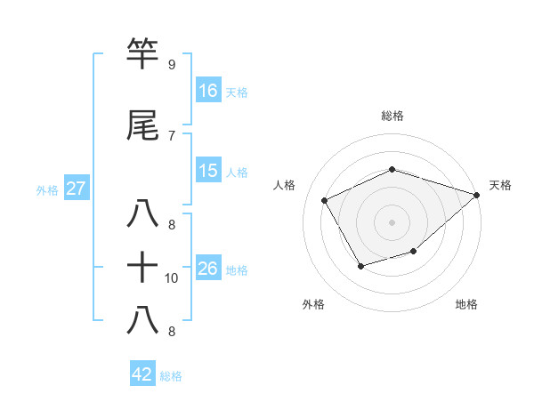 竿尾 八十八さんの総格は42画の3点!